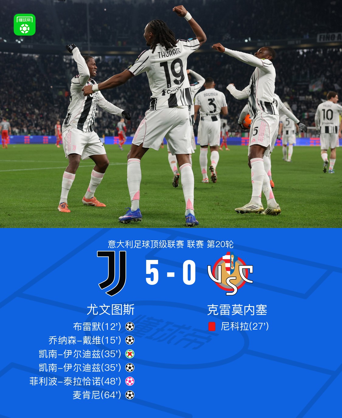 劍南春丨尤文5-0克雷莫內塞,戴維、伊爾迪茲、麥肯尼建功