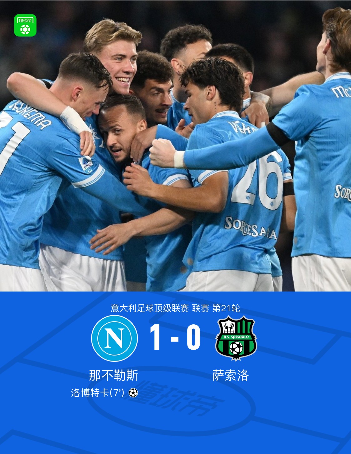 那不勒斯1-0薩索洛,洛博特卡端射破門,盧卡-利帕尼造險