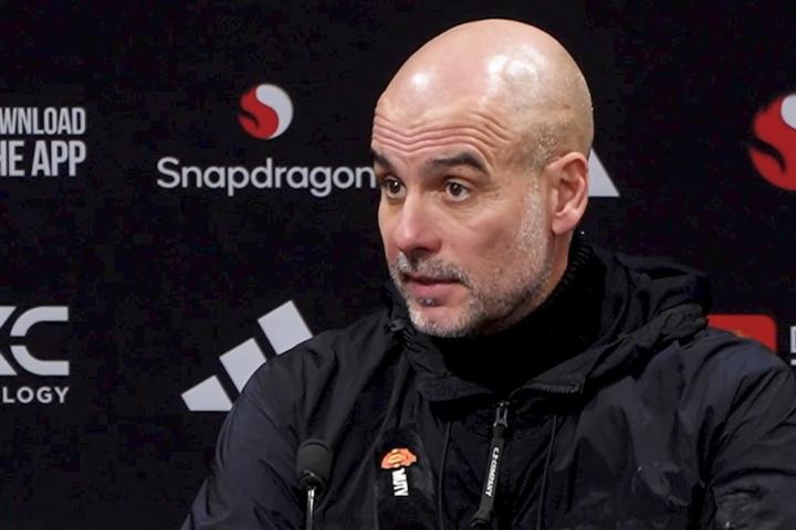 英超第22輪,曼城客場0-2不敵曼聯,賽后,曼城主帥瓜迪奧拉出席新聞發布會接受媒體提問。
